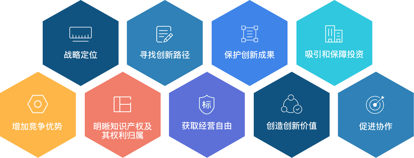 ISO 56005国际标准总则中这样描述知识产权对于创新主体的作用。组织能够利用知识产权达成实现业务目标及实施创新行动等多种目的,包括: